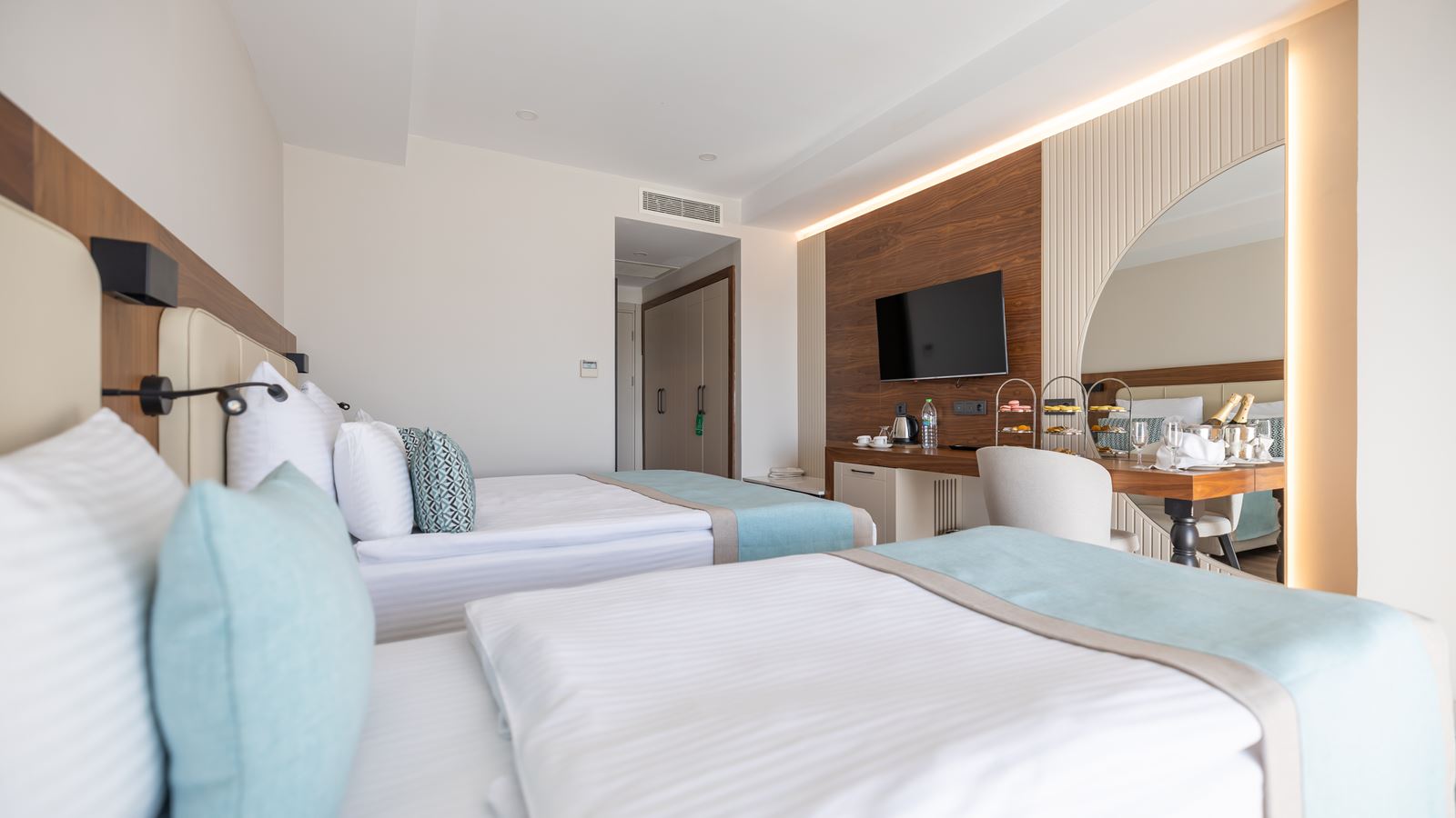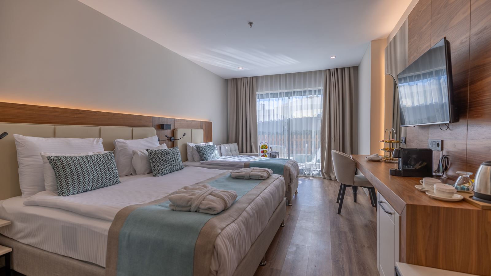 Standard Land View 2+2 | Kokku tube: 106 Toa suurus: 28 - 31 ruutmeetrit 1 magamistuba (Ülisuur kaheinimesevoodi: 1, Kaks üheinimesevoodit: 1) Vannitoad: 1 (Dušš) WC-d: 1 Rõdu Hoovivaade, Aia vaade Õhukonditsioneer (töötab perioodil: aastaringselt, 24 tundi) TV, kanalid: Inglise Tee või kohvi võimalus Minibaar toas (Igapäevane; jaoks "Ultra All Inclusive" Tasuta) Juhtmevaba/internett (Tasuta) Seif toas (Tasuta) Laminaat Igapäevane Telefon Toad asuvad korrustel: 1,2,3,4,5 Lisavoodi: Kokkupandav Maksimaalne täituvus: Täiskasvanutest kuni 3, lapsed kuni 2; Inimesi kokku: kuni 4 |