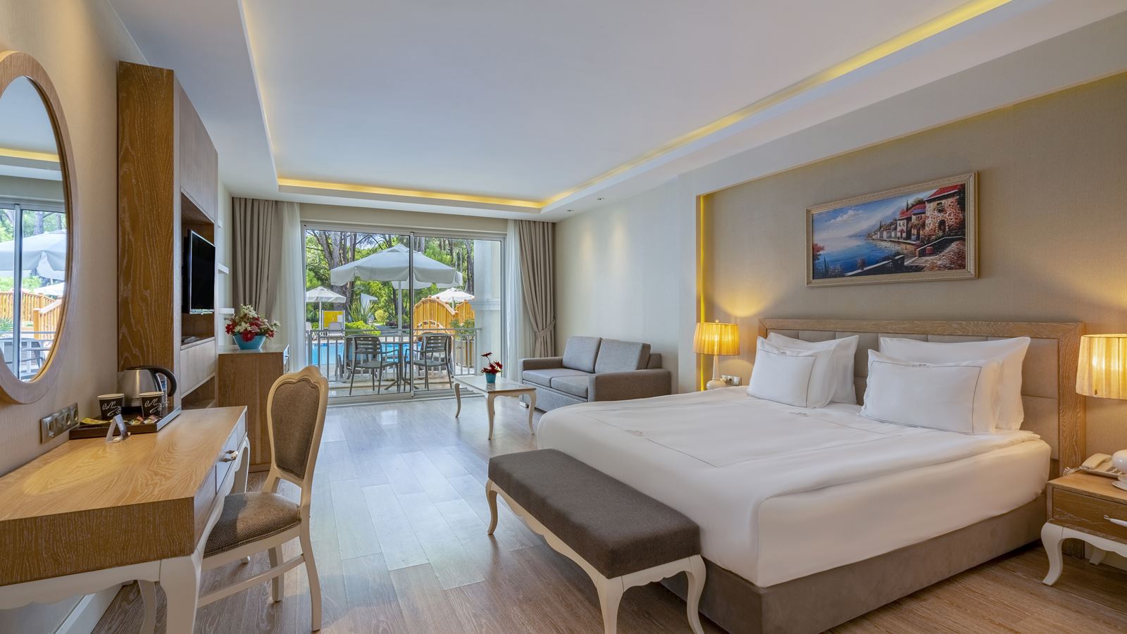 Main Building Standard Room Sea View | Kokku tube: 83 Toa suurus: 25 ruutmeetrit 1 magamistuba (Ülisuur voodi või kaks üheinimesevoodit: 1) Vannitoad: 1 (Vann) WC-d: 1 Rõdu Rannaäärne, Mereäärne Õhukonditsioneer (töötab perioodil: aastaringselt, 10:00-23:59) Tee või kohvi võimalus Minibaar toas (Igapäevane; jaoks "Ultra All Inclusive" Tasuta) Juhtmevaba/internett (Tasuta) Seif toas (Tasuta) Laminaat Igapäevane Telefon Toad asuvad korrustel: 1,2,3,4,5,6 Lisavoodi: Kokkupandav Maksimaalne täituvus: Täiskasvanutest kuni 3, lapsed kuni 2; Inimesi kokku: kuni 3 |