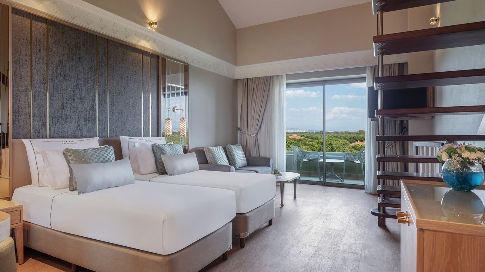 Family Dublex Forest View | Kokku tube: 32 Toa suurus: 60 ruutmeetrit 2 magamistuba (Ülisuur kaheinimesevoodi: 1, Kaks üheinimesevoodit: 2) Vannitoad: 2 (Dušš) WC-d: 2 Rõdu Korruseid toas: 2; esimene korrus: Vannituba, Vannituba, WC; teine korrus: Magamistuba, Vannituba, WC Maastikuvaade Õhukonditsioneer (töötab perioodil: aastaringselt, 24 tundi) TV, kanalid: Inglise Tee või kohvi võimalus Minibaar toas (Igapäevane; jaoks "Ultra All Inclusive" Tasuta) Juhtmevaba/internett (Tasuta) Seif toas (Tasuta) Laminaat Igapäevane Telefon Toad asuvad korrustel: 4,5 Lisavoodi: Kokkupandav Maksimaalne täituvus: Täiskasvanutest kuni 4, lapsed kuni 1; Inimesi kokku: kuni 5 |