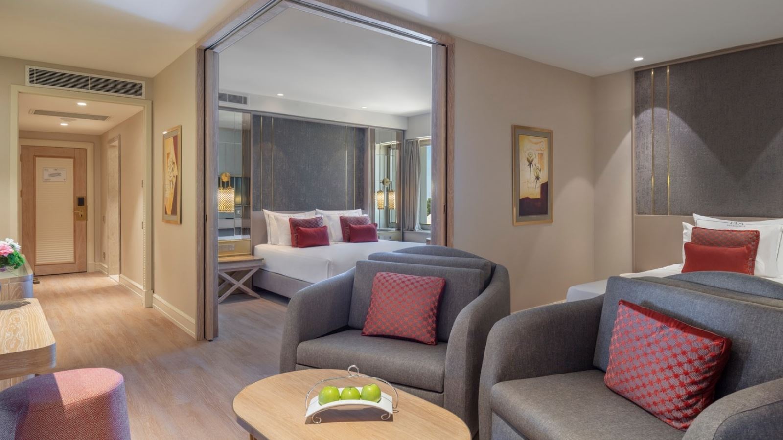 Ela Family Suite | Kokku tube: 5 Toa suurus: 100 ruutmeetrit Elutuba 2 magamistuba (Ülisuur kaheinimesevoodi: 1, Kaks üheinimesevoodit: 2) Uks Vannitoad: 1 (Vannituba või dušš) WC-d: 1 Rõdu Maastikuvaade Õhukonditsioneer (töötab perioodil: aastaringselt, 24 tundi) TV, kanalid: Inglise Tee või kohvi võimalus Minibaar toas (Igapäevane; jaoks "Ultra All Inclusive" Tasuta) Juhtmevaba/internett (Tasuta) Seif toas (Tasuta) Laminaat Igapäevane Telefon Lillede ja puuvilja teenus (Saabumisel) Toad asuvad korrustel: 1,2,3,4,5 Lisavoodi: Kokkupandav Maksimaalne täituvus: Täiskasvanutest kuni 4, lapsed kuni 1; Inimesi kokku: kuni 5 |