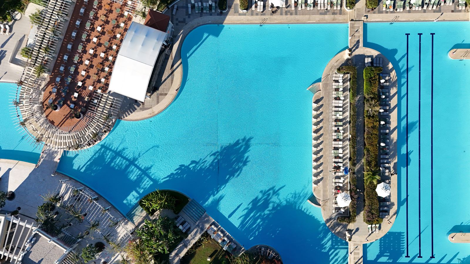 Basseinid täiskasvanutele: 2 | Välibassein (suurus 845 m2, sügavus 70-140 cm) Sisebassein (Soojendatud, suurus 216 m2, sügavus 70-140 cm) |