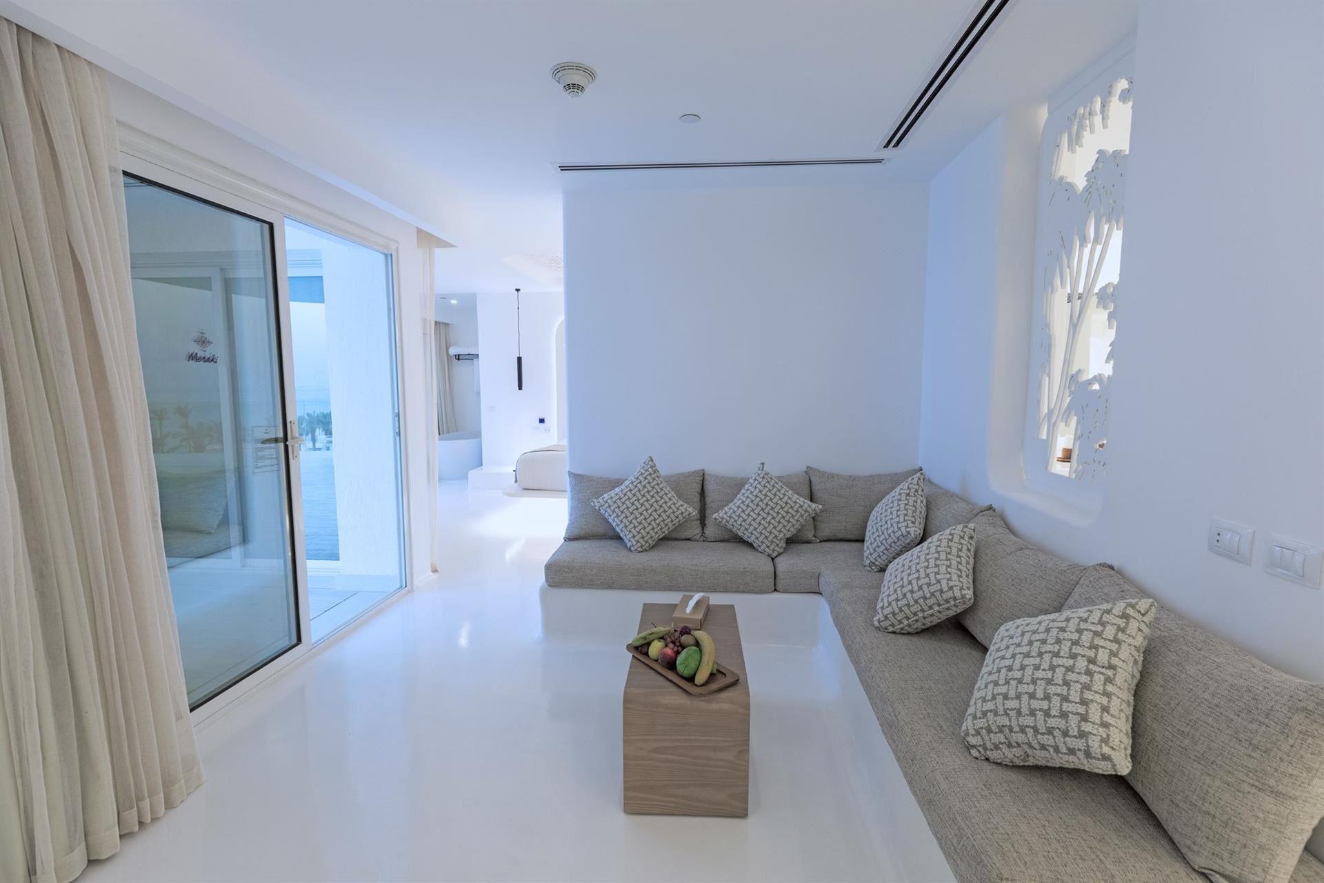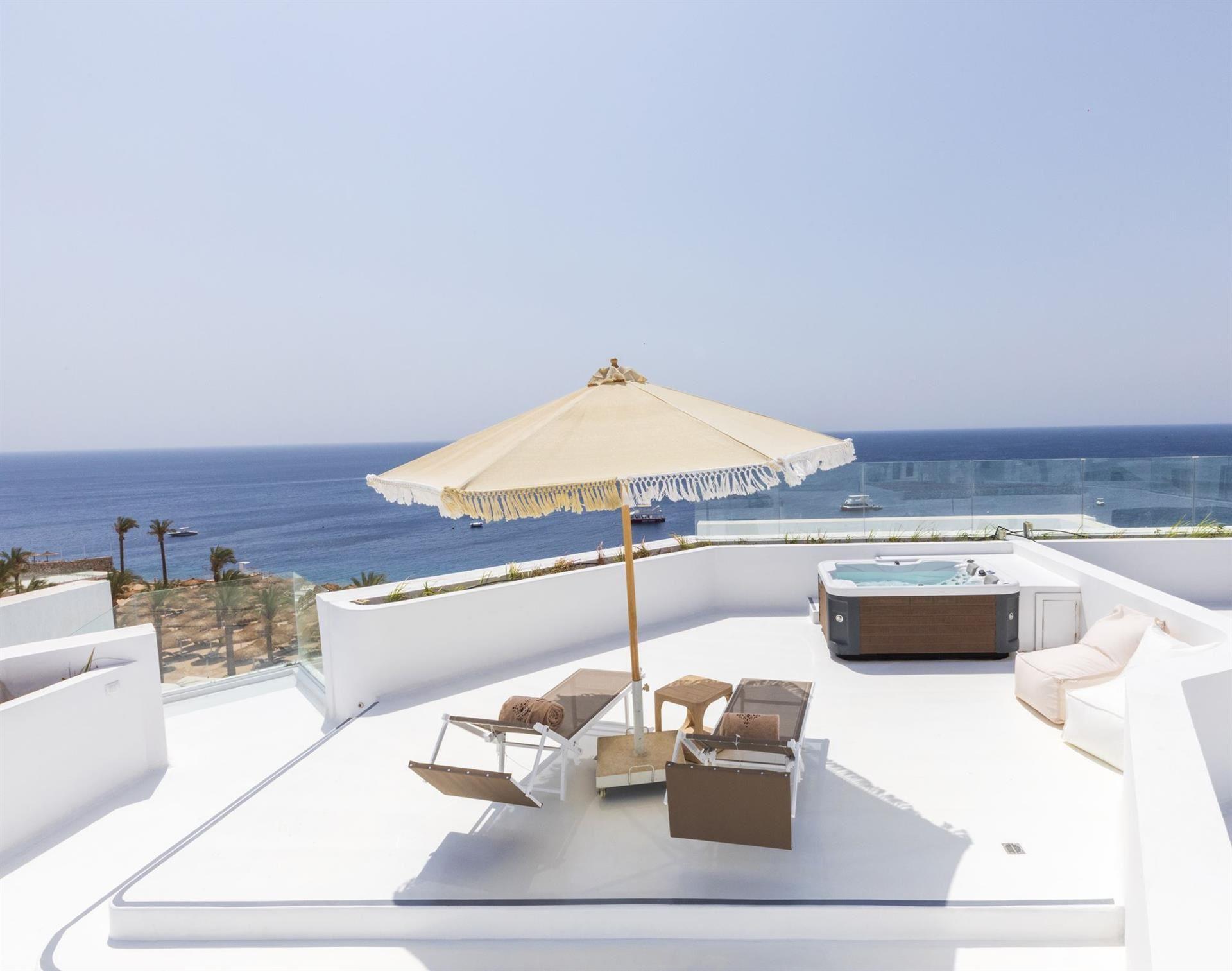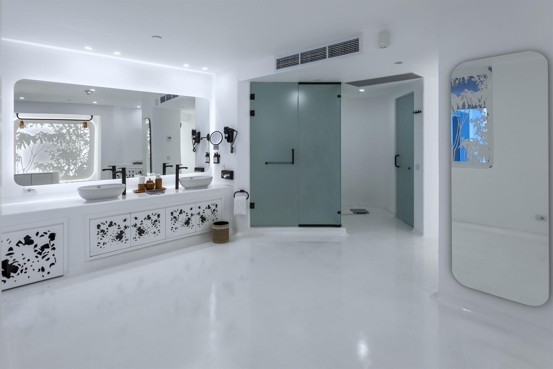53 m2, kaheinimesevoodi, elutuba, duši ja vanniga vannituba, terrass, privaatne bassein, osaline merevaade.