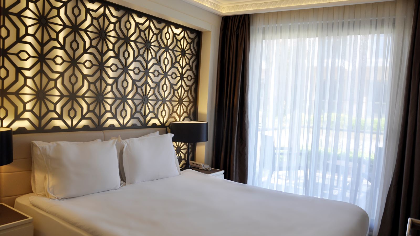 | King Suit | Kokku tube: 1 Toa suurus: 131 - 250 ruutmeetrit Kööginurk 2 magamistuba (Ülisuur kaheinimesevoodi: 1, Kaks üheinimesevoodit: 2) Uks Vannitoad: 1 (Dušš) WC-d: 1 Terrass Merevaade Õhukonditsioneer (töötab perioodil: aastaringselt) TV, kanalid: Inglise Tee või kohvi võimalus Minibaar toas (Igapäevane; jaoks "Ultra All Inclusive" Tasuta) Juhtmevaba/internett (Tasuta) Seif toas (Tasuta) Laminaat Igapäevane Telefon Ülemteener (Tasuta) Toad asuvad korrustel: 1,2 Lisavoodi: Sohvavoodi Maksimaalne täituvus: Täiskasvanutest kuni 4, lapsed kuni 0; Inimesi kokku: kuni 5 |