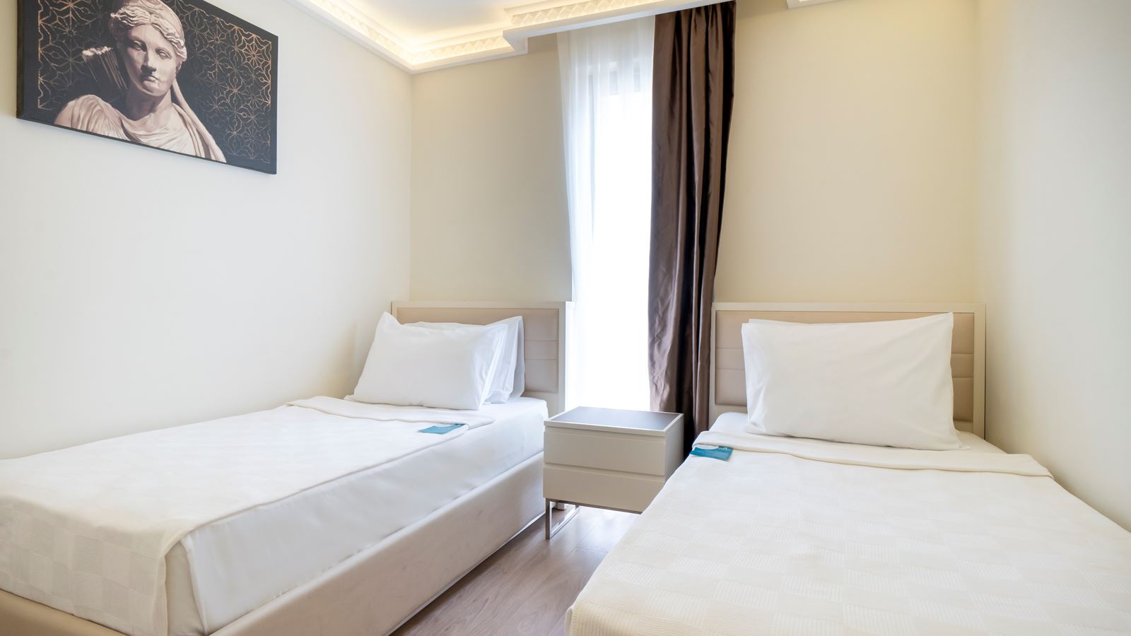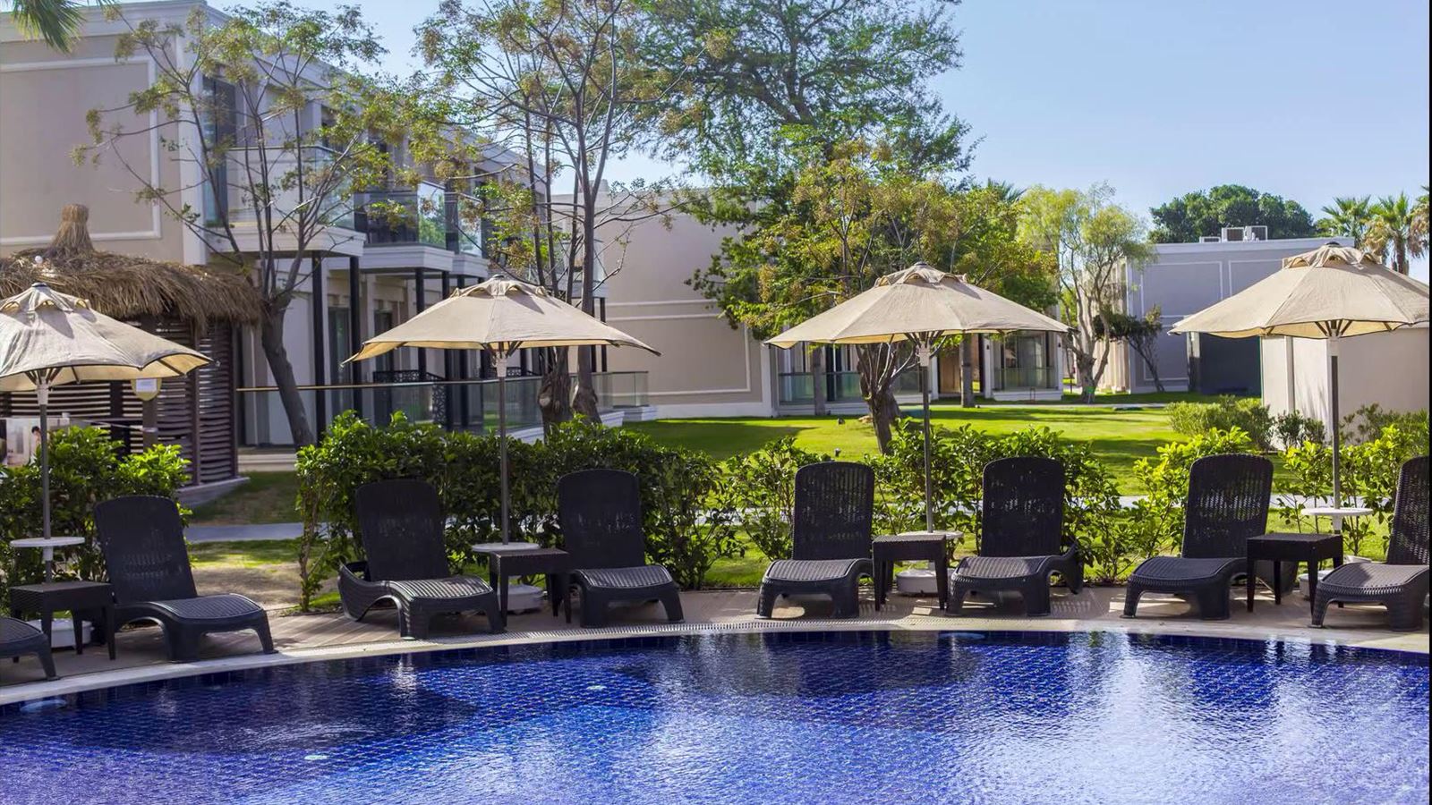 | Village Suit | Kokku tube: 16 Toa suurus: 48 - 54 ruutmeetrit 2 magamistuba (Ülisuur kaheinimesevoodi: 1, Kaks üheinimesevoodit: 2) Vannitoad: 1 (Dušš) WC-d: 1 Rõdu Aia vaade Õhukonditsioneer (töötab perioodil: aastaringselt) TV, kanalid: Inglise Tee või kohvi võimalus Minibaar toas (Igapäevane; jaoks "Ultra All Inclusive" Tasuta) Juhtmevaba/internett (Tasuta) Seif toas (Tasuta) Laminaat Igapäevane Telefon Toad asuvad korrustel: 1 Maksimaalne täituvus: Täiskasvanutest kuni 4, lapsed kuni 1; Inimesi kokku: kuni 5 |