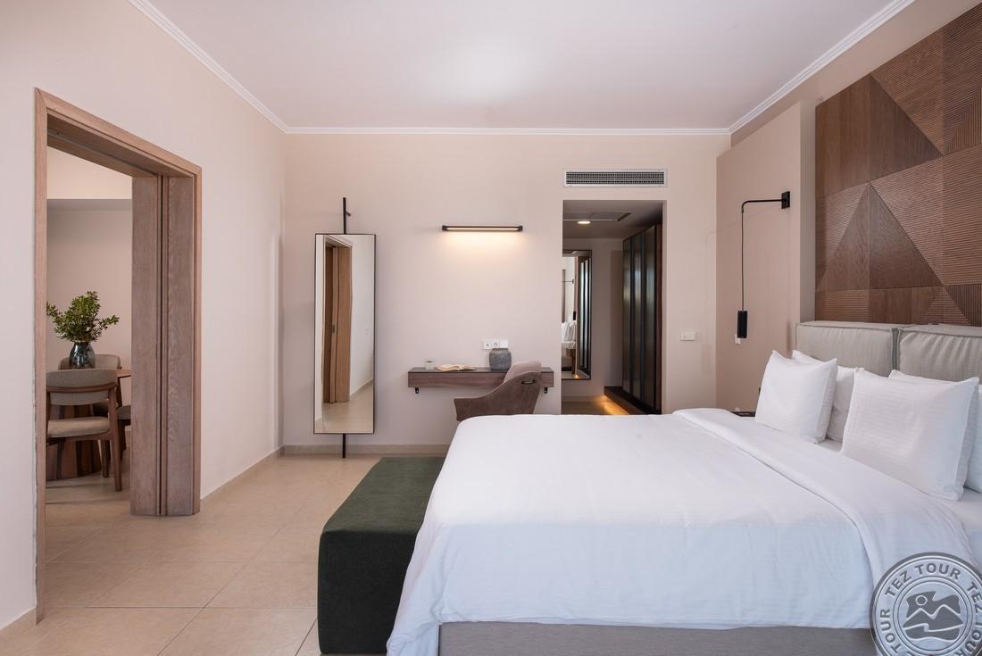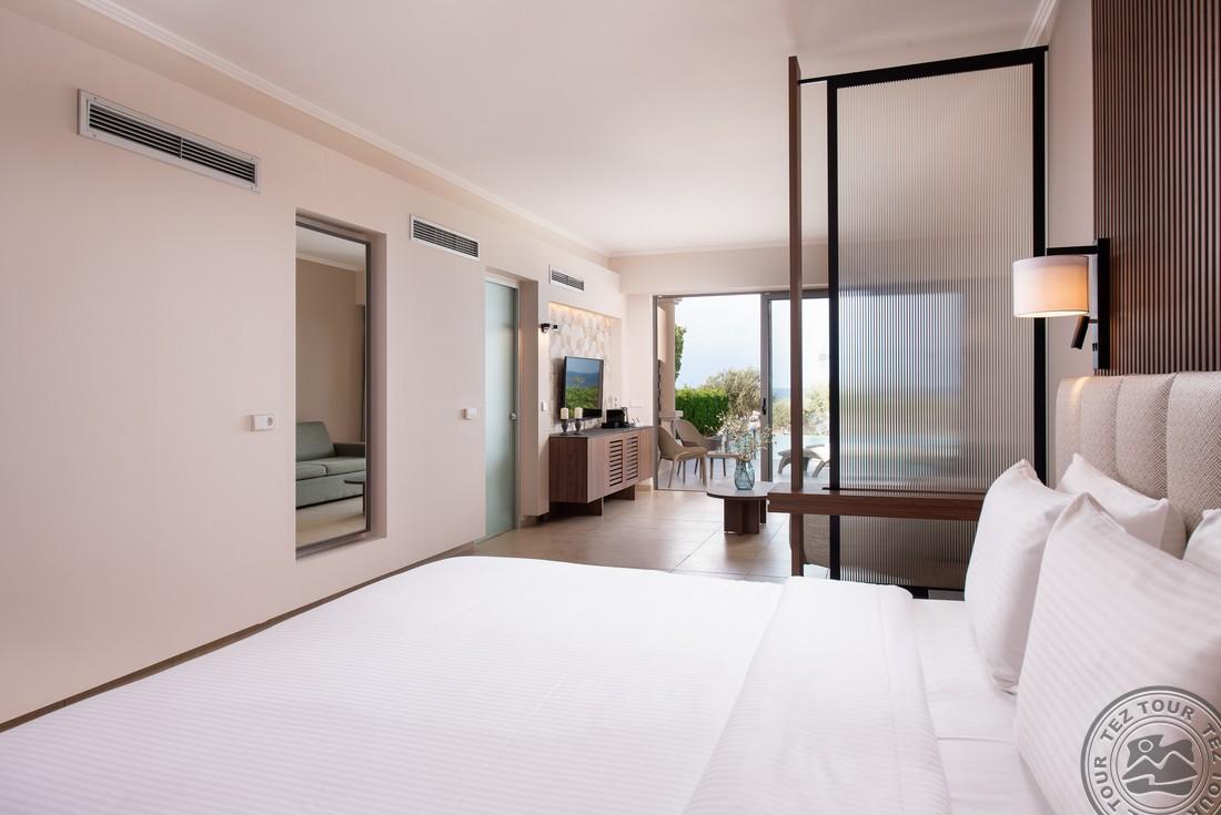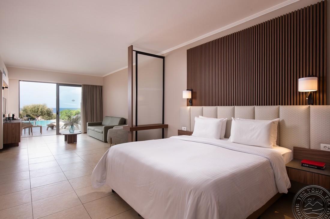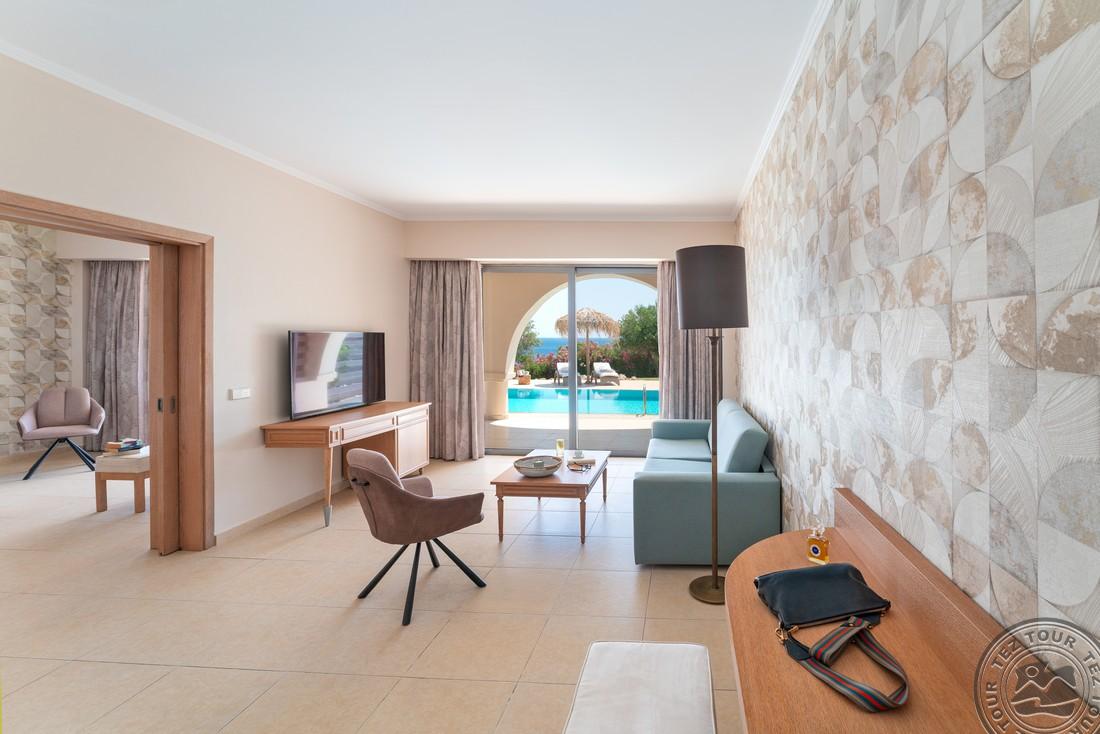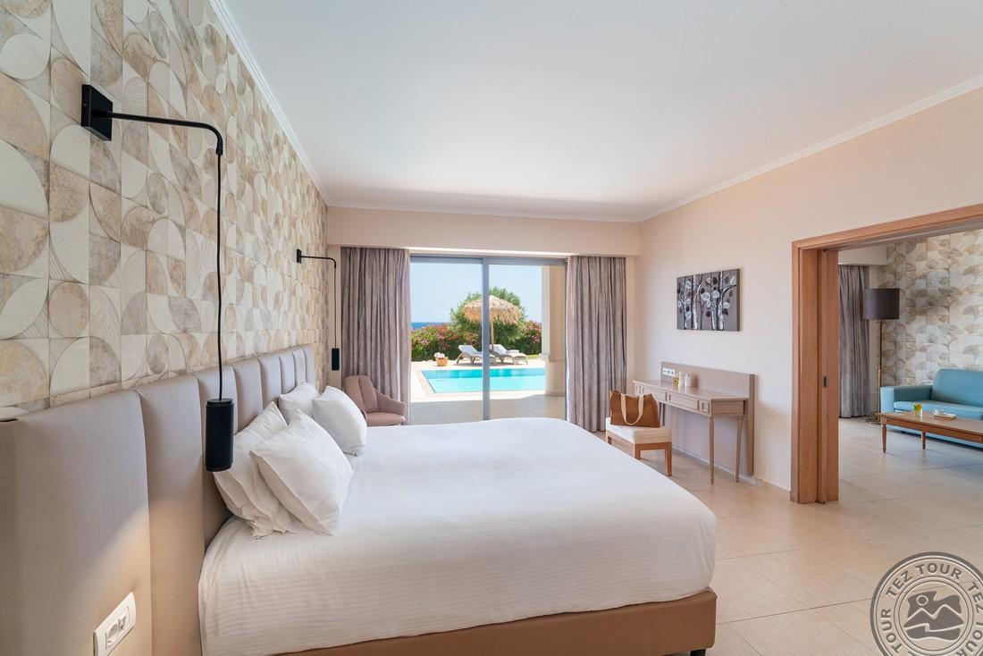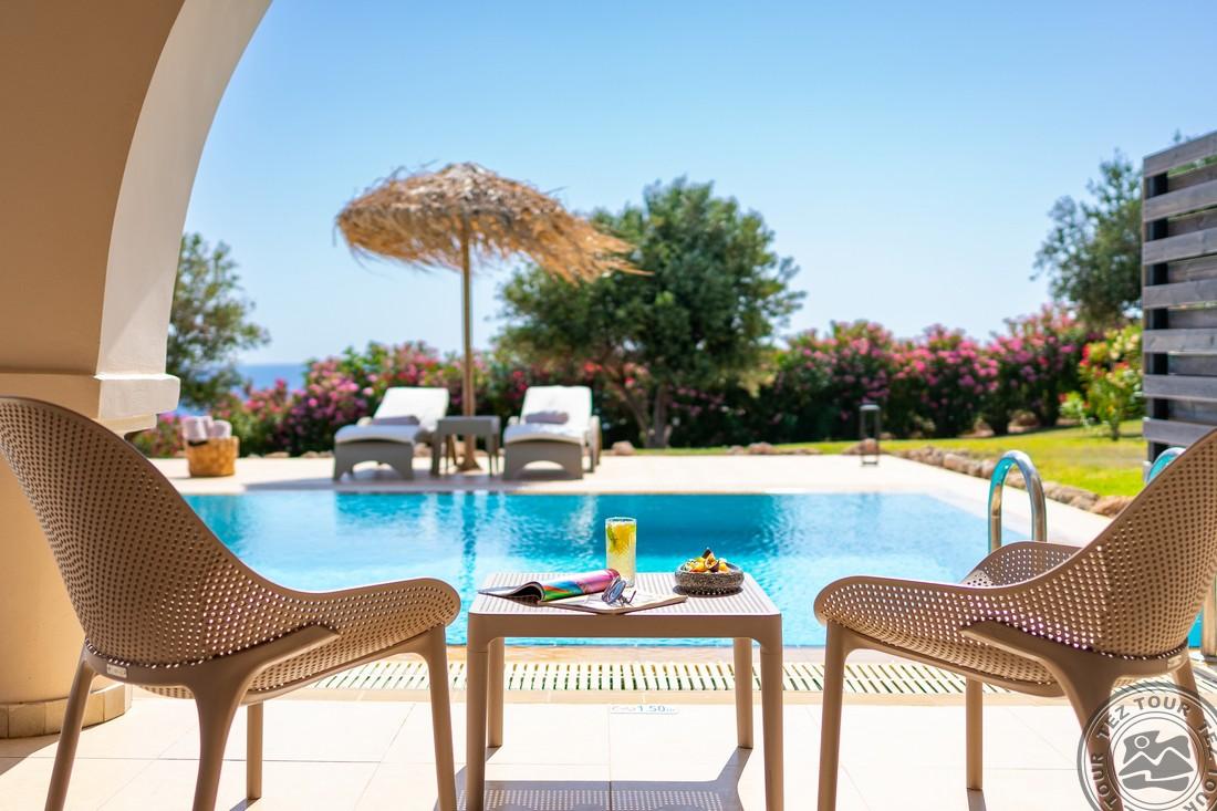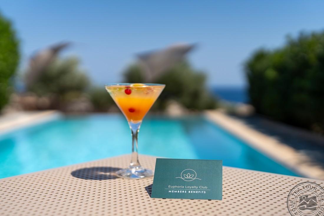 Euphoria Club Junior Suite with Private Pool (mere- ja basseini vaade, magamistuba elutoaosaga, kaheinimese või 2 üheinimese voodit, lisavoodi - sohva, terrass, ind. bassein (25 m2), lamamistoolid, mahub 3+1 in., 52 m2);