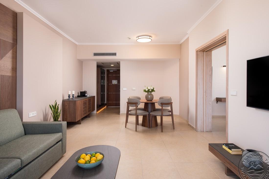 Junior Suite Open Plan SV (merevaade, magamistuba elutoaosaga, kaheinimese või 2 üheinimese voodit, lisavoodi - sohva, mahub 3+1 in., 45 m2);