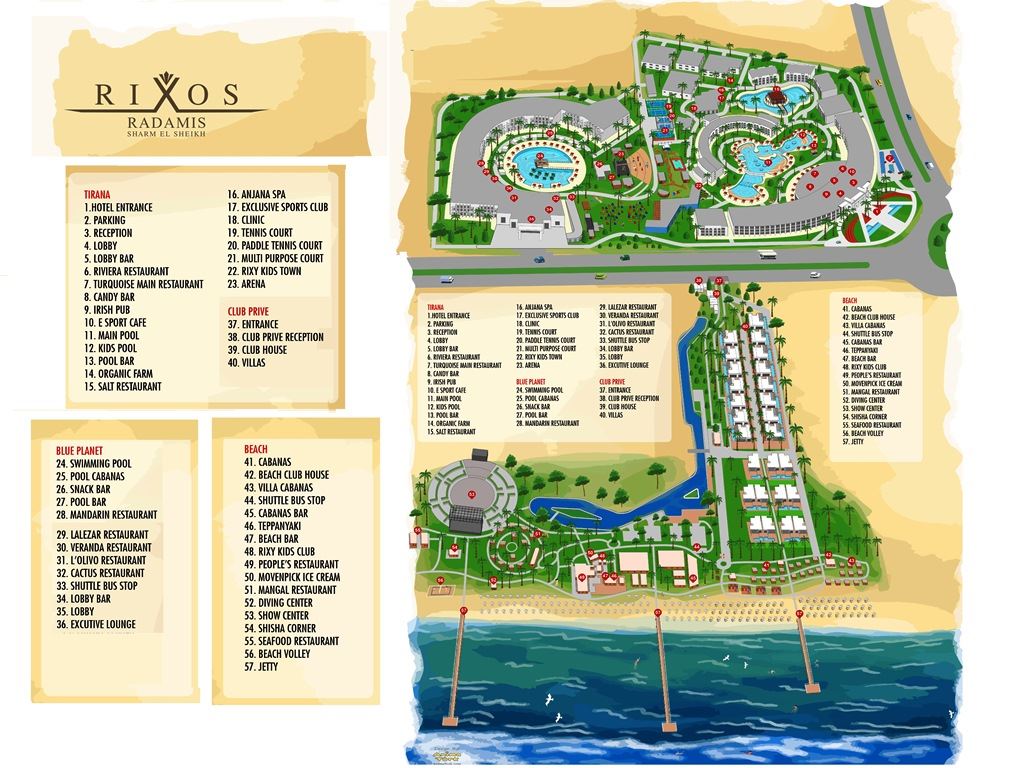 | Lepingud | Aadress: Nabq Bay, Sharm El Sheikh Telefon: +(20) 693710080 E-post: fady.askar@accor.com Veebileht: https://allinclusive-collection.com/en/hotel/rixos-radamis-sharm-el-sheikh/ Instagram: https://www.instagram.com/rixosradamis/ |